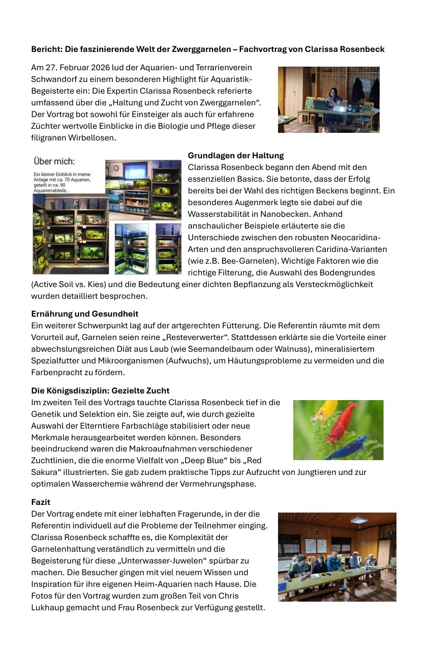 27.02.2026 Vortrag: Clarissa Rosenbeck – Haltung und Zucht von Zwerggarnelen